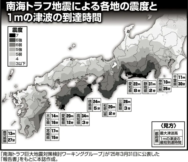 関東地方も例外ではありません。千葉県には11mに達する津波が30分で到達し、東京都中央区、港区、江東区、品川区、大田区にも3mの津波が地震発生から約2時間で押し寄せます」(前出・科学ジャーナリスト)