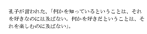 子曰く、これを知る者はこれを好む者にしかず。これを好む者はこれを楽しむ者にしかず。