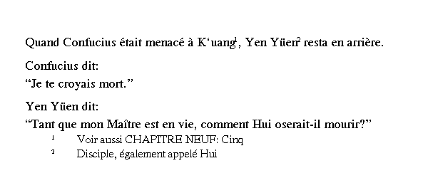子、匡に畏す。顔淵、後る。子曰く、われ女をもって死せりとなす。曰く、子在す。回、なんぞあえて死せん。