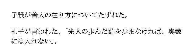 子張、善人の道を問う。子曰く、迹を践まざれば、また室に入らず。